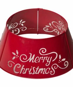 Coupon ๐ Glitzhome Red “Merry โ Christmas” Cutout Metal Tree Collar With Light String, 22″ ๐ฏ