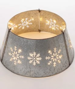 Deals 🔥 Glitzhome 21.65″ Snowflake Diecut Metal Tree Collar With Light String 🔔