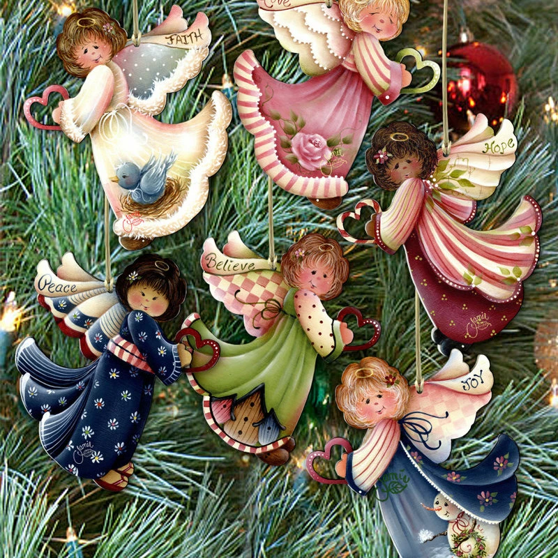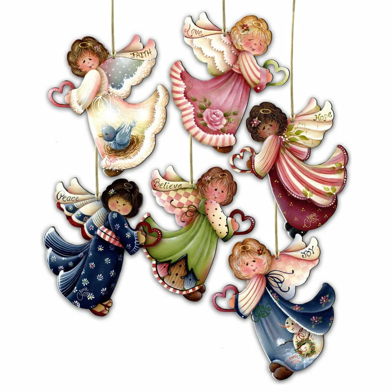 Promo โค๏ธ AMonogramart Loving Angels Wooden Ornaments, Set Of 6 ๐