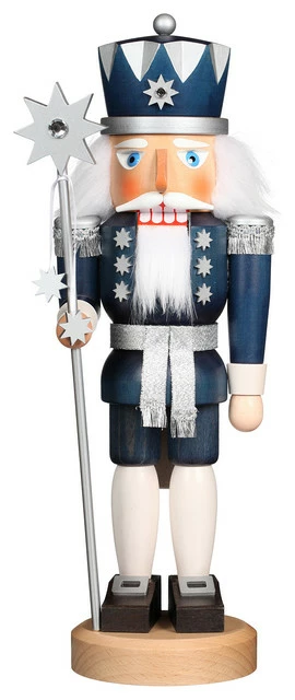 Christian Ulbricht Nutcracker – King of stars nutcracker wearing a night blue jacket studded with silver stars and a sparking belt – Made in Germany