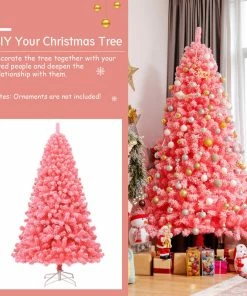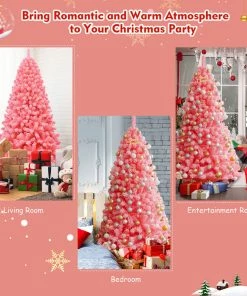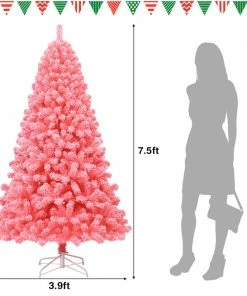 This unlit artificial Christmas tree is full of spirits of romance and elegance. Standing at 7.5 feet tall, this pink Xmas tree features 1364 individually crafted branch tips that are covered with thick snow powder. It looks full-bodied and lifelike in appearance, fully restoring the shape of a natural tree. You can bend these thick and flexible tips into any shape you like to get a better tree shape. Moreover, they are strong enough to bear small ornaments. So you can hang ornaments as many as possible on it to cater to different party themes. Made of 100% new PVC, this Christmas tree is non-toxic, odorless and fire-retardant in daily use. Thereβs no need for you to worry about health and safety problems. With the help of hinged branches, putting the tree together is a piece of cake for you.