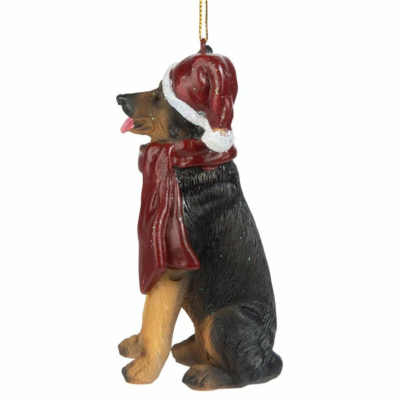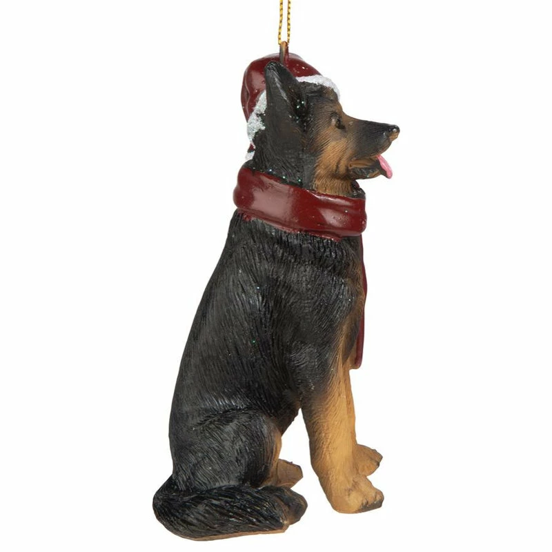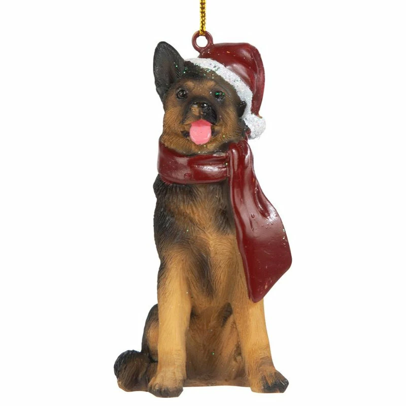 With a festive Santa hat and red scarf, this adorable German Shepherd dog ornament has neither a “bark” nor a “bite” worth worrying over! Our Design Toscano exclusive German Shepherd dog ornament is realistically sculpted, cast in quality designer resin and hand painted for the “discriminating dog lover”. The perfect canine gift for German Shepherd dog aficionados and a fun way to include your pets in holiday decorating! Approx. 2″Wx1″Dx3″H. lb. More dog breed ornaments available: French Bulldog, Weimaraner, Beagle, Dalmatian, Chihuahua, Dachshund, “Yorkie” Yorkshire Terrier, Pointer, Border Collie, Mini Schnauzer, Cavalier King Charles Spaniel, German Shepherd, Boston Terrier, Boxer, Bulldog, Golden Retriever, Siberian Husky, Black Labrador, Maltese, Pit Bull, White Poodle, Pug, Rottweiler, Doberman, Welsh Corgi