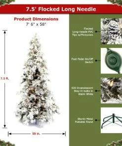 Flash Sale 👏 Direct Export 7.5′ Flocked Pine Long Needle Prelit Artificial 🎄 Christmas Tree 👍