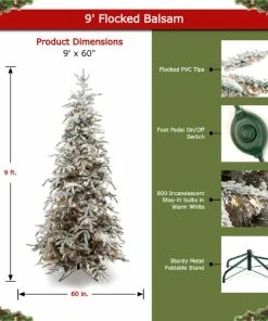 Flash Sale 👍 Direct Export 9′ Flocked Balsam Prelit Artificial 🎄 Christmas Tree ✨