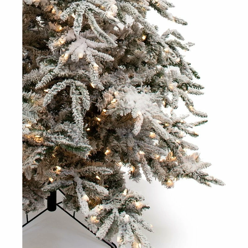 The 9′ Flocked Balsam Christmas Tree is a beautiful, dramatic tree with amazing attention to detail. Fresh snowfall and multi-length branch construction will show off your treasured ornaments to perfection.�