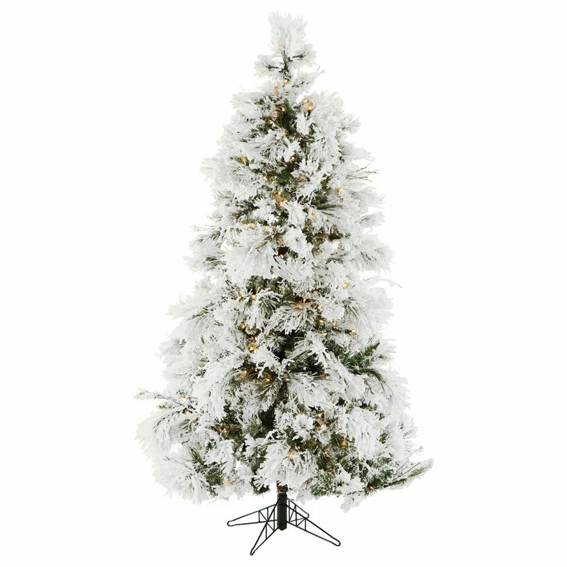 The 9 ft. Snowy Pine is an Artificial Christmas Tree from Fraser Hill Farm. This model features a traditional full silhouette with extremely lifelike foliage and all-metal hinged branch construction. A heavily flocked finish was designed to resemble freshly fallen snow that is true to season and produces a natural effect. Fraser Hill Farm produces the most realistic trees in the market, featuring all the long-term benefits that come with owning an artificial tree. Imagine never having to shop, chop, and pay for another natural tree again. With the Flocked Snowy Pine, simply unfold out of storage and decorate! This model is prestrung with clear LED lighting, a system of 850 bulbs that are evenly distributed and hold to frame. The tree needles are constructed out of non-allergenic and flame-retardant materials then painted multiple hues of green and white so no two are exactly alike. Together these details create the look of a natural tree and requires hardly any maintenance.