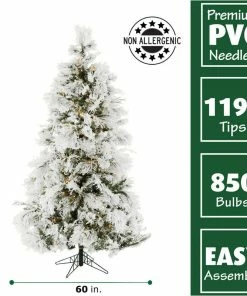 Hot Sale 😉 Fraser Hill Farm Flocked Snowy Pine 🔔 Christmas Tree, 9′, Clear Led Lights 🥰