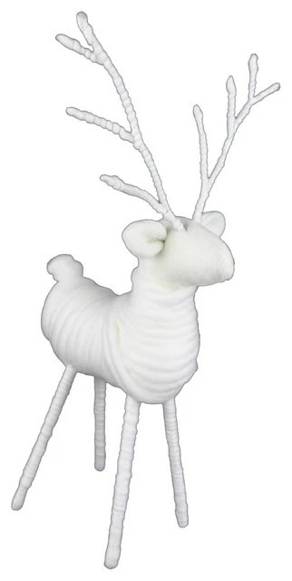 This beautiful white reindeer will make the cutest addition to your home for the holidays. Wrapped in wool form head to toe. Bottom of the feet are burlap sure to stay put and not damage any surfaces.