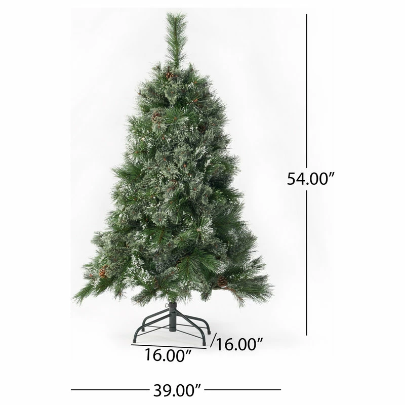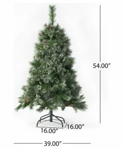 DIMENSIONS: Choose a centerpiece for the holidays that is the perfect size for you and your home. This Christmas tree is 39.00” W x 39.00” D x 54.00” H with a base of 16.00″ W x 16.00″ D x 6.50″ H. You will love how festive your interior space can become with the simple addition of this charming tree.