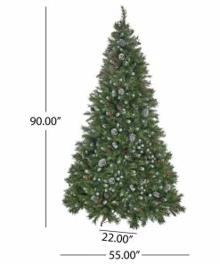 DIMENSIONS: Choose a centerpiece for the holidays that is the perfect size for you and your home. This Christmas tree is 55.00” W x 55.00” D x 90.00” H with a base of 22.00″ W x 22.00″ D x 7.00″ H. You will love how festive your interior space can become with the simple addition of this charming tree.