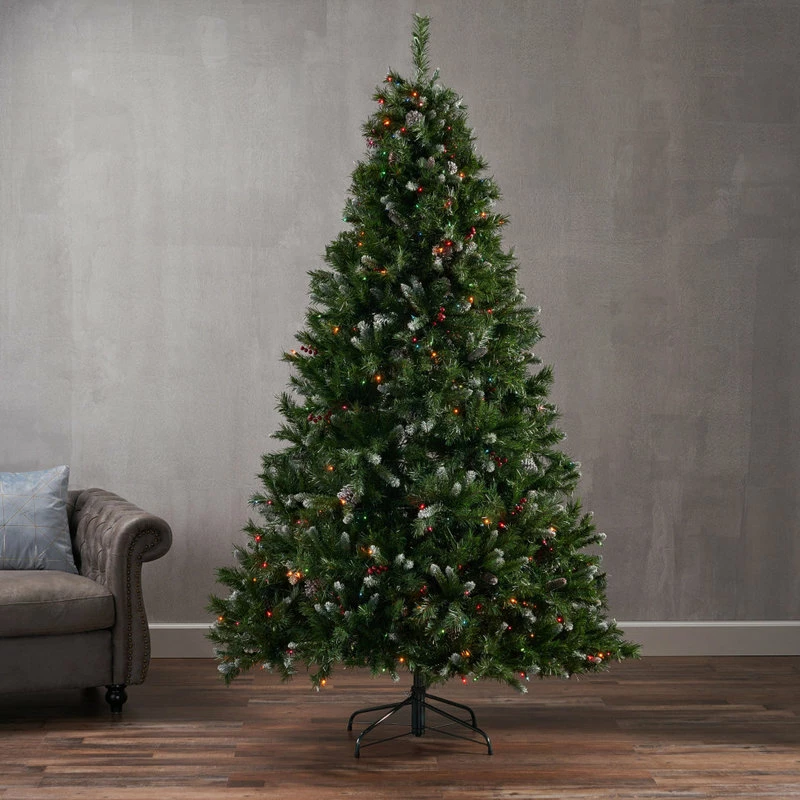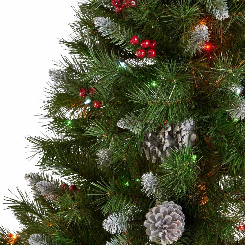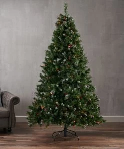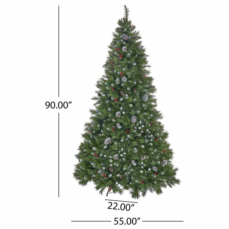 MIXED NEEDLES: From its frosted branches to its bright red berries and snow powdered pine cones, our tree perfectly captures the charm of Christmas. Featuring a gorgeous mix of fir and pine needles, this tree is finished with natural-looking branches for all of your ornaments. Please note that this accessory is intended for indoor use only.