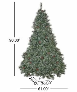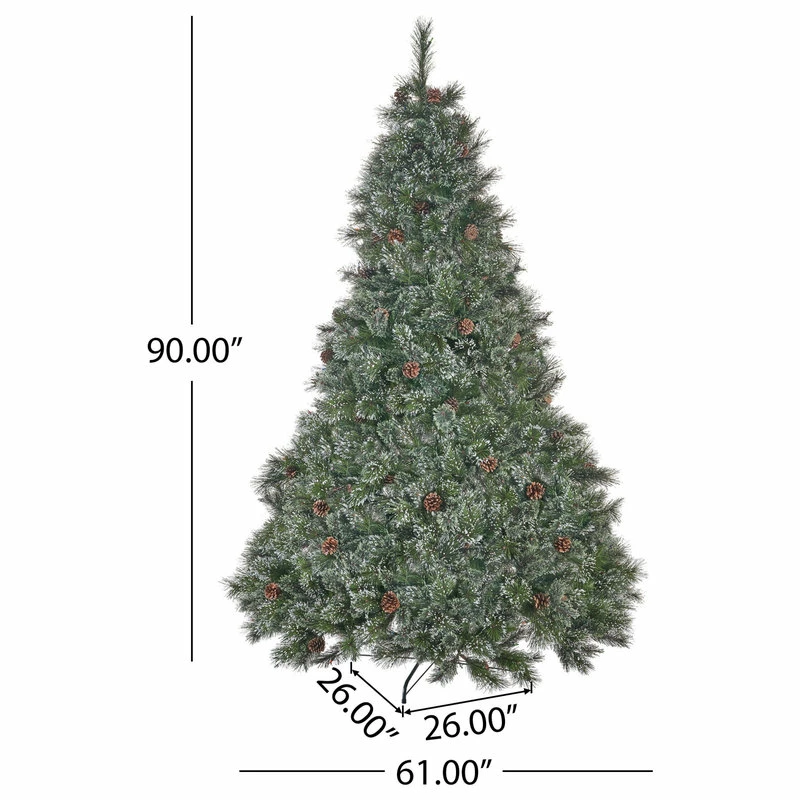 DIMENSIONS: Choose a centerpiece for the holidays that is the perfect size for you and your home. This Christmas tree is 61.00” W x 61.00” D x 90.00” H with a base of 26.00″ W x 26.00″ D x 7.50″ H. You will love how festive your interior space can become with the simple addition of this charming tree.