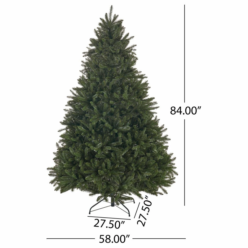DIMENSIONS: Choose a centerpiece for the holidays that is the perfect size for you and your home. This Christmas tree is 58.00″W x 58.00″D x 84.00″ H with a base of 27.50″ W x 27.50″ D x 7.75″ H. You will love how festive your interior space can become with the simple addition of this charming tree.