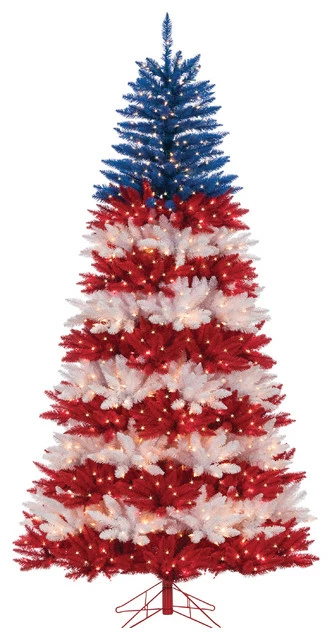 Patriotic American Tree, 7.5 ft., 1040 UL Clear Lights, & 10 Twinkle Lights on Top Section, 2215 Tips, 48 in. Base Width