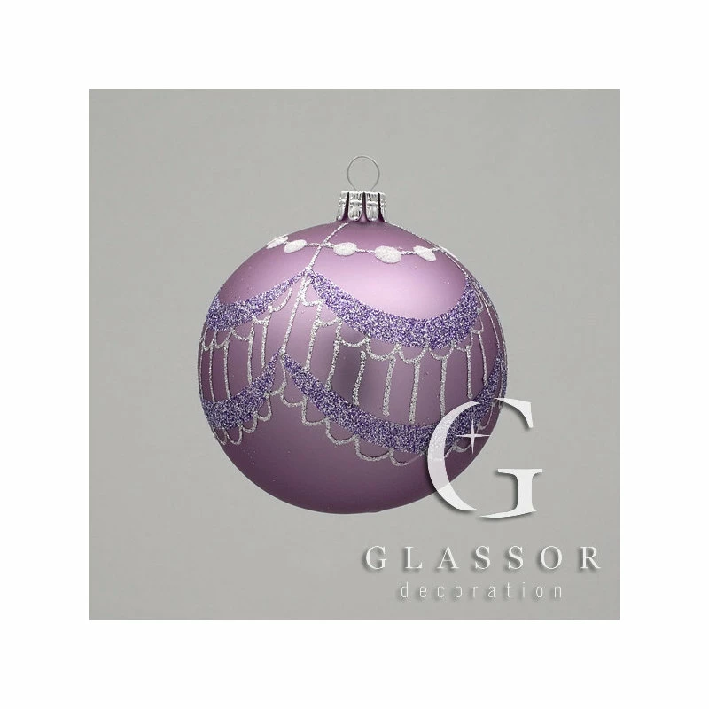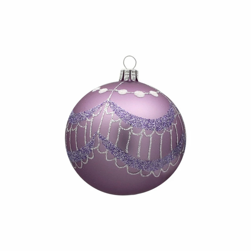 A unique glass ornament that adds color and an additional layer of silver tassels to your Christmas decor: 3.15″ glass ball ornament painted matte purple with a silver and purple sparkled tassel scrollwork Part of a design series — look for other shapes on our website. Double boxed for shipping. Hand blown and hand decorated Diameter: 3.15 in. Handcrafted in Czech Republic