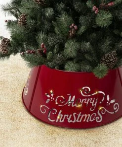 Add the final touch to your country Christmas with galvanized Merry Christmas words tree collar with lights string . It slightly flares out toward the base, which creates simple framing and covers the tree’s stand. Rustic replacement for the traditional tree skirt .Create a unique look for your Christmas tree this year with this Rustic Tree Collar. This unique collar gives the tree a rustic look while maintaining the holiday spirit.