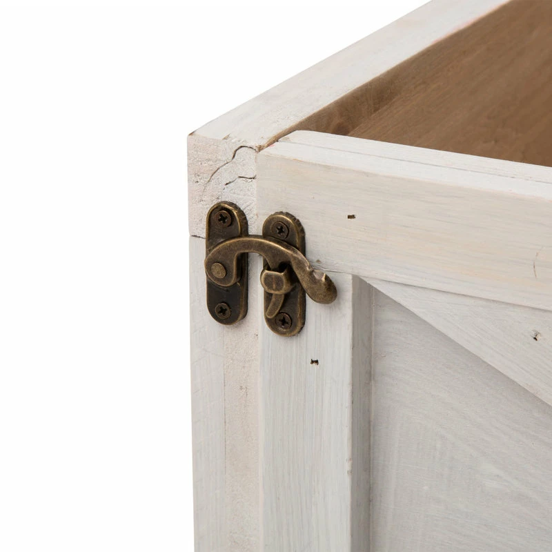 The handcrafted tree box collars add a rustic, elegant charm to any home or business. The tree box not only adds beauty and hide the undesirable parts of your tree, but this also prevents kids and pets from getting into the bottom side of your tree. This is stained in white finish. There are 3 panels and each panel has a locking bracket on them. It will be shipped flat and minimal assembly is required with no tools necessary. You will simply take the two side panels and lock them into the front panel. From there you can then slide your box into place in front of your tree. When the sad day of taking your Christmas tree comes, you can simply unlock the box by lifting the two sides up, and then it can be stored flat. This size fits most standard tree bases.