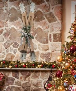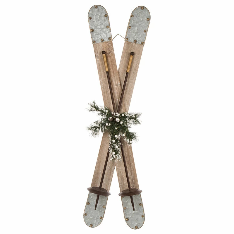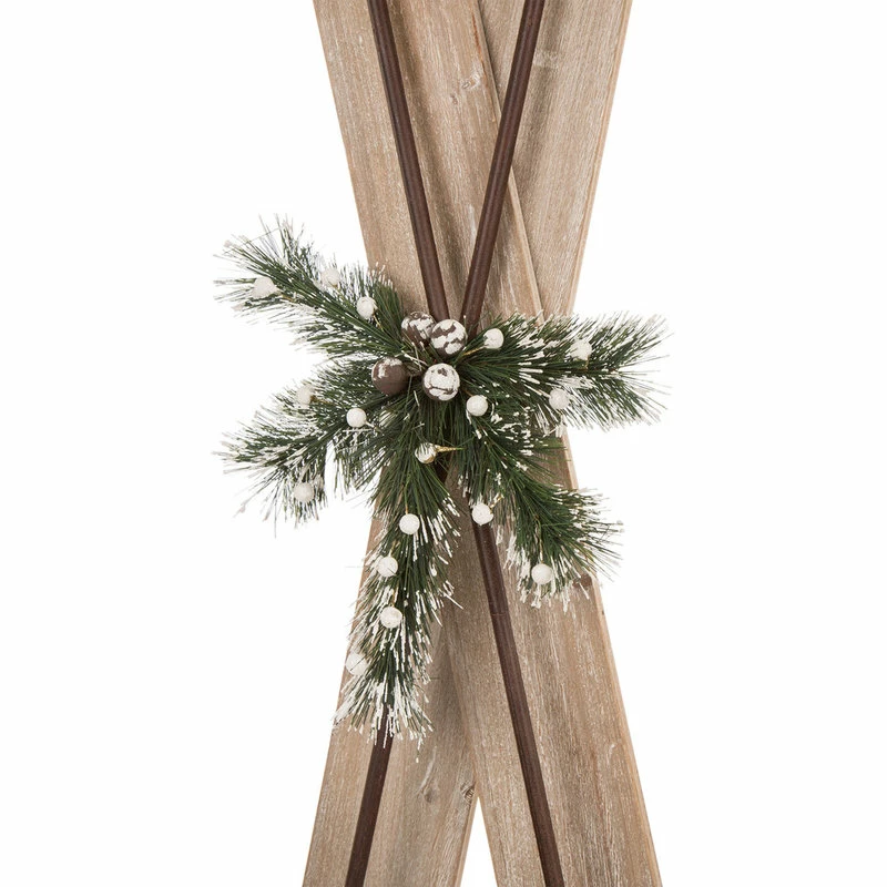 Christmas cross holiday “Merry Christmas” decorative sleigh. Made of wood with metal decoration. Perfect decorative item for Christmas tree and the holiday season.