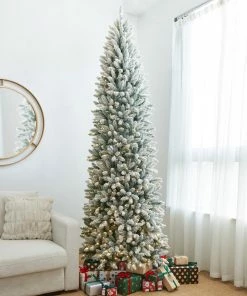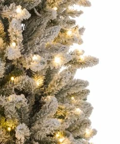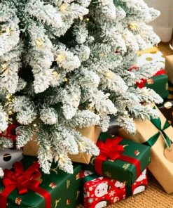 - Fluffy flocked artificial 3D pine needles in mixed shapes. Pre-lit 600 warm white LED light bulbs and 1860 tips, to create a fragrant Christmas atmosphere