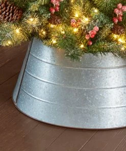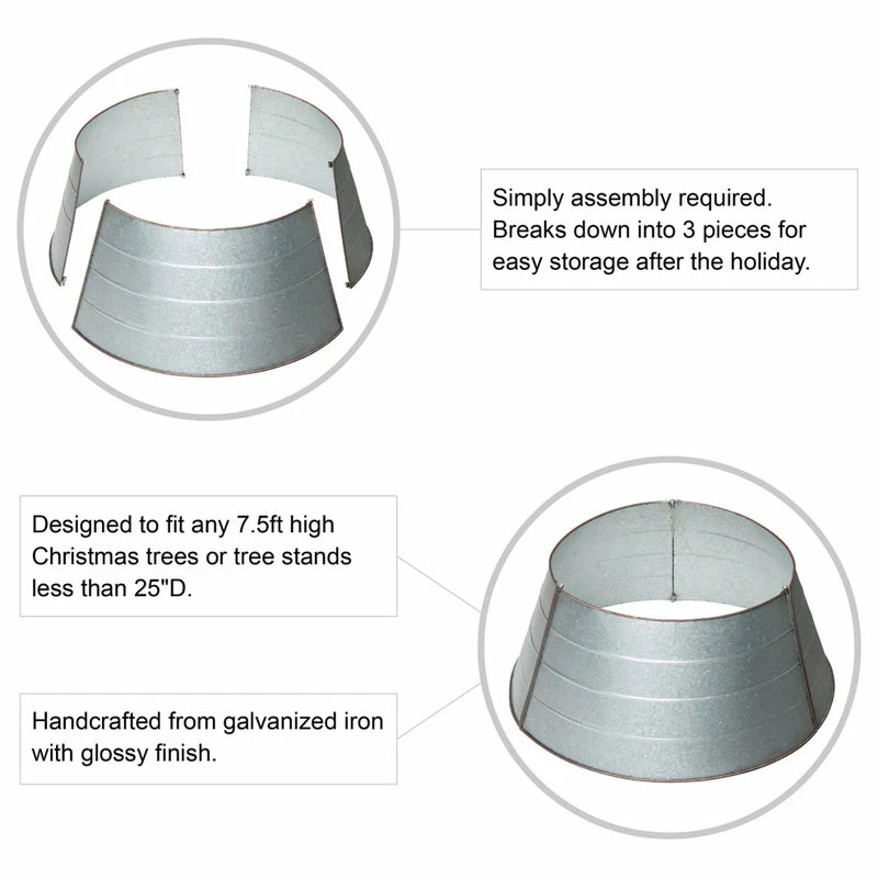 Add the final touch to your rustic Christmas with this galvanized tree collar. It slightly flares out toward the base, which creates simple framing and covers the trees stand. Made from sturdy metal, you can use this collar for seasons to come.