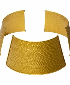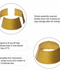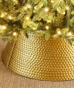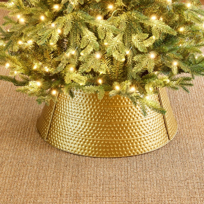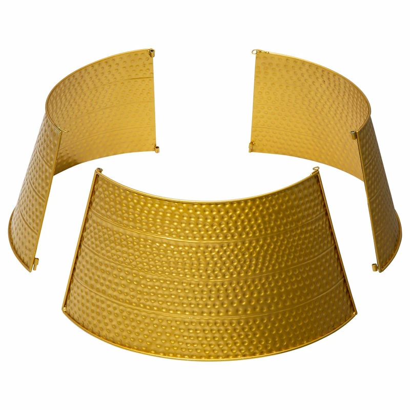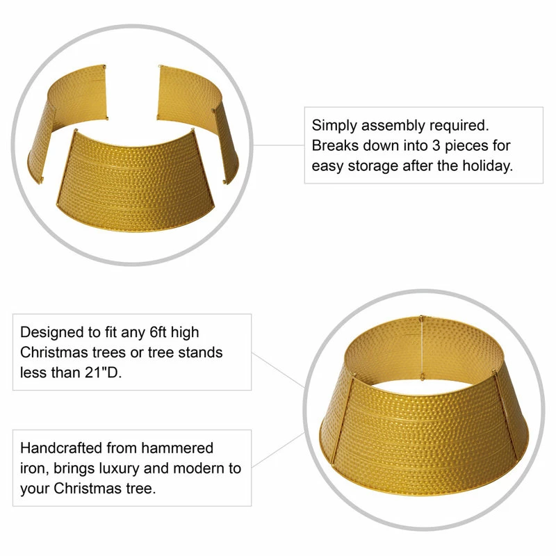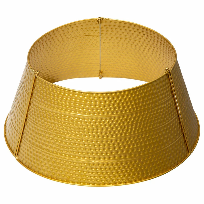 Add the final touch to your modern Christmas with this gold hammered tree collar. It slightly flares out toward the base, which creates simple framing and covers the trees stand. Made from sturdy metal, you can use this collar for seasons to come.