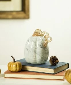 Best Sale โ๏ธ Glitzhome Gray Marble Tall Glass Pumpkin 5.71″H ๐