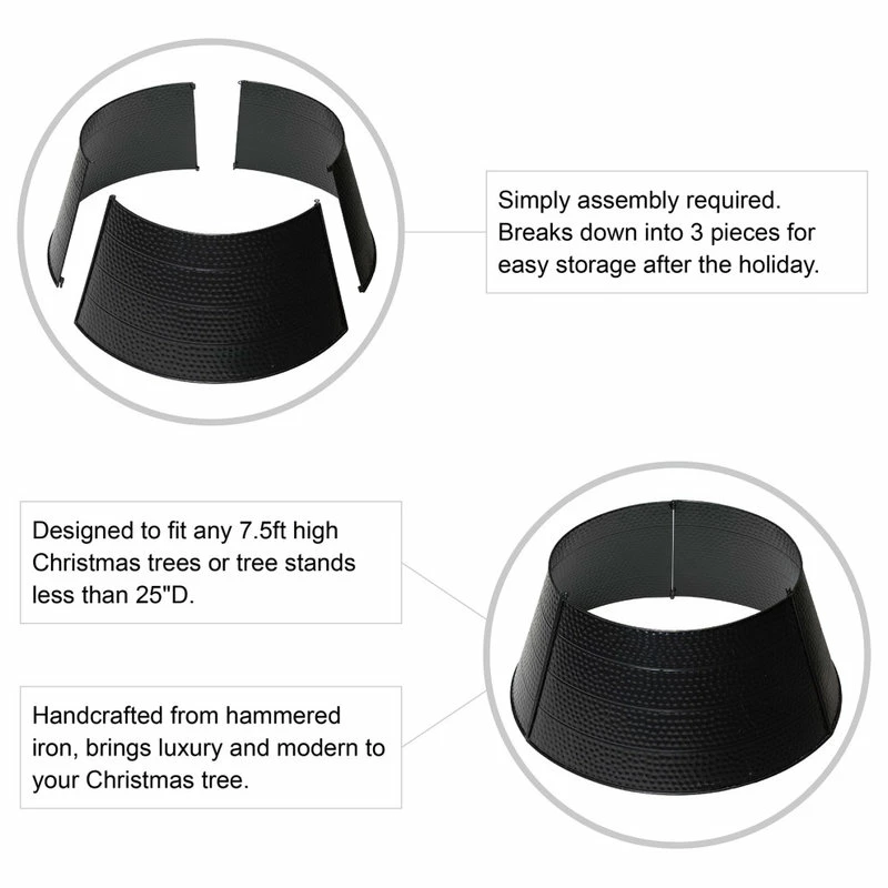 Add the final touch to your modern Christmas with this black hammered tree collar. It slightly flares out toward the base, which creates simple framing and covers the trees stand. Made from sturdy metal, you can use this collar for seasons to come.