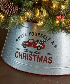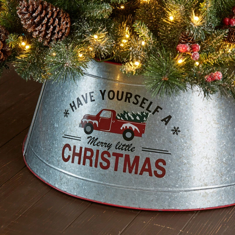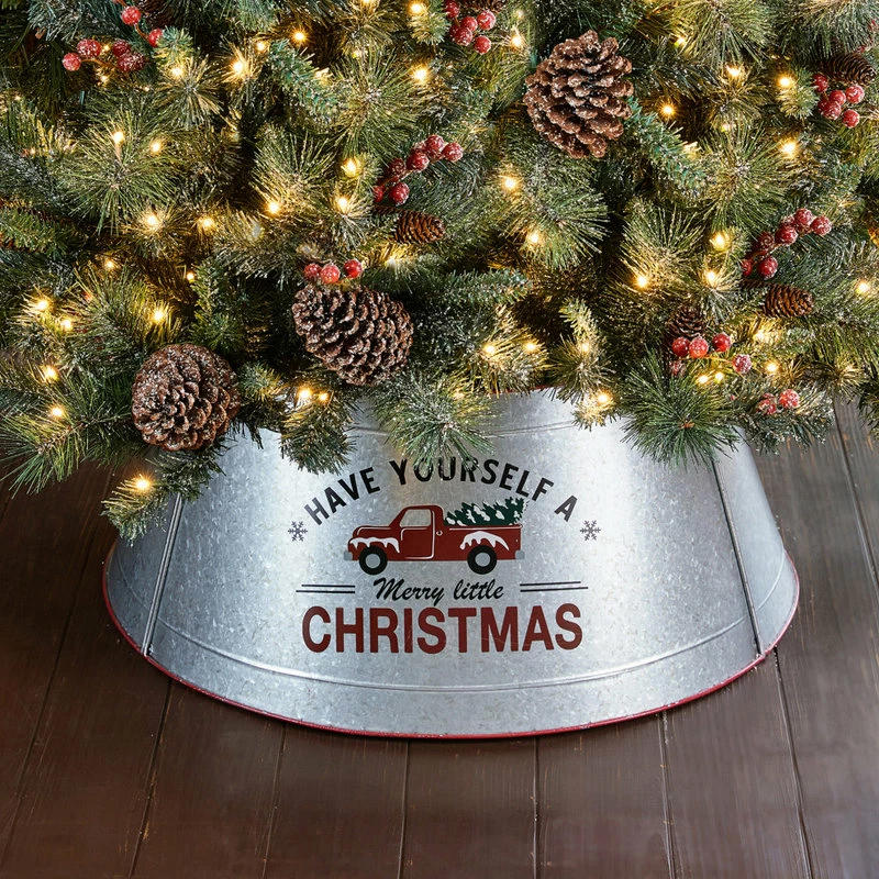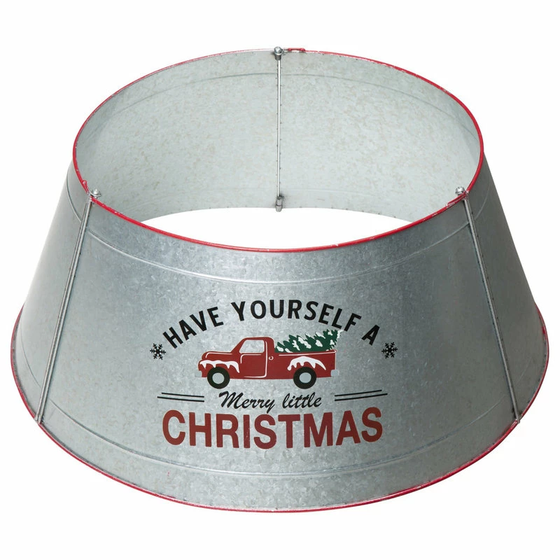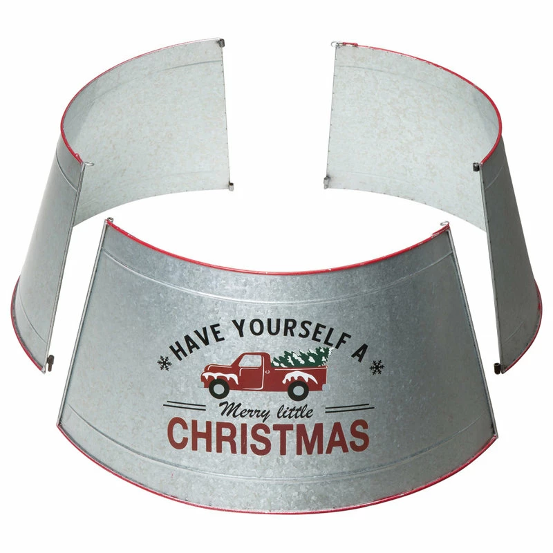 Add the final touch to your farmhouse Christmas with this galvanized metal tree collar, it slightly flares out toward the base, which creates simple framing and covers the trees stand. Made from sturdy metal, you can use this collar for seasons to come.