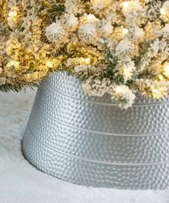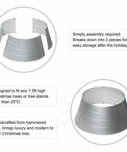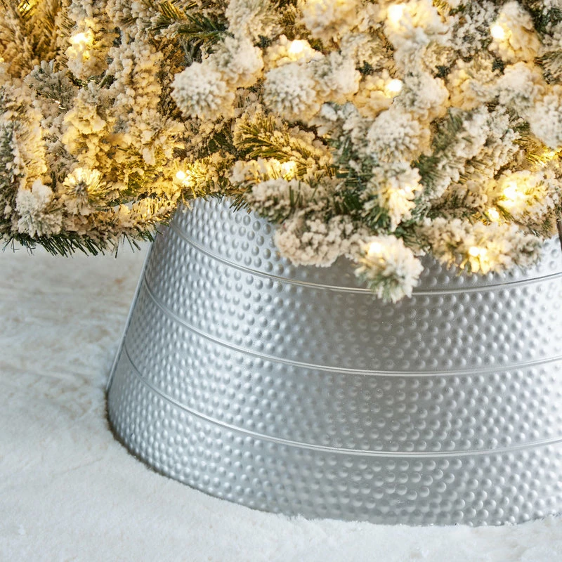 Add the final touch to your modern Christmas with this silver hammered tree collar. It slightly flares out toward the base, which creates simple framing and covers the trees stand. Made from sturdy metal, you can use this collar for seasons to come.