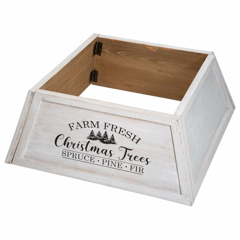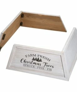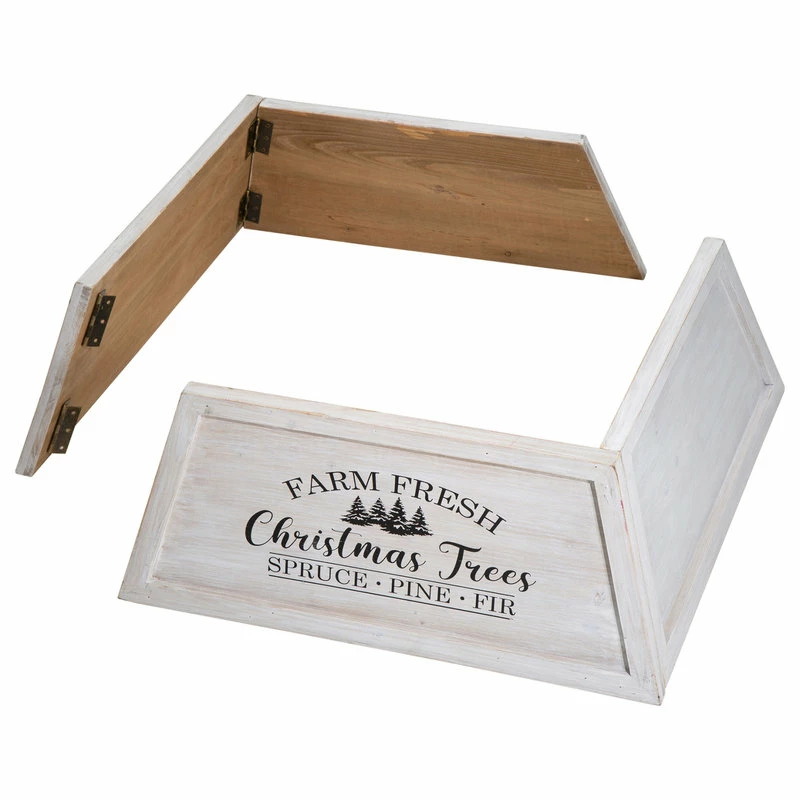 Our handcrafted tree box collars add a rustic, elegant charm to any home or business. The tree boxes not only add beauty and hide the undesirable parts of your tree, but they also prevent kids and pets from getting into the bottom side of your tree. They are made of solid wood. You will simply take the 2 side panels and lock them into the front panel. From there you can then slide your box into place in front of your tree. The trapezoididal design adds your tree with uniqueness.