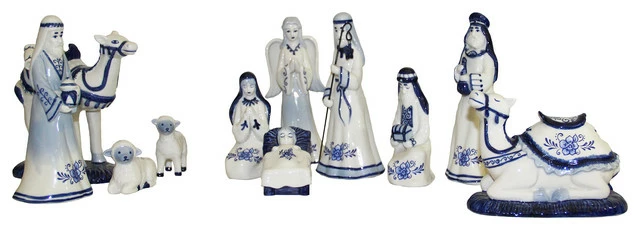 Brand new 😍 Kurt S. Adler, Inc. 1.97-6.7″ Porcelain Delft Blue Nativity Set, 11-Piece Set 👍