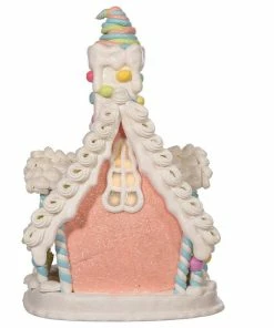 Add a fun, classic touch to your holiday decor with this 12.5″ Battery-Operated Light Up Pastel Gingerbread House from Kurt Adler. This house is festively decorated with gingerbread and candy-inspired detailing.’the house is pink and is decorated with other pastel colors. When turned on it illuminates from within for a festive glow.