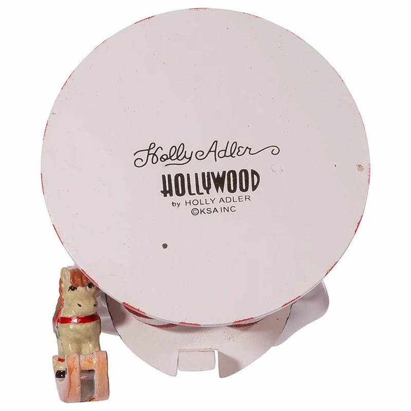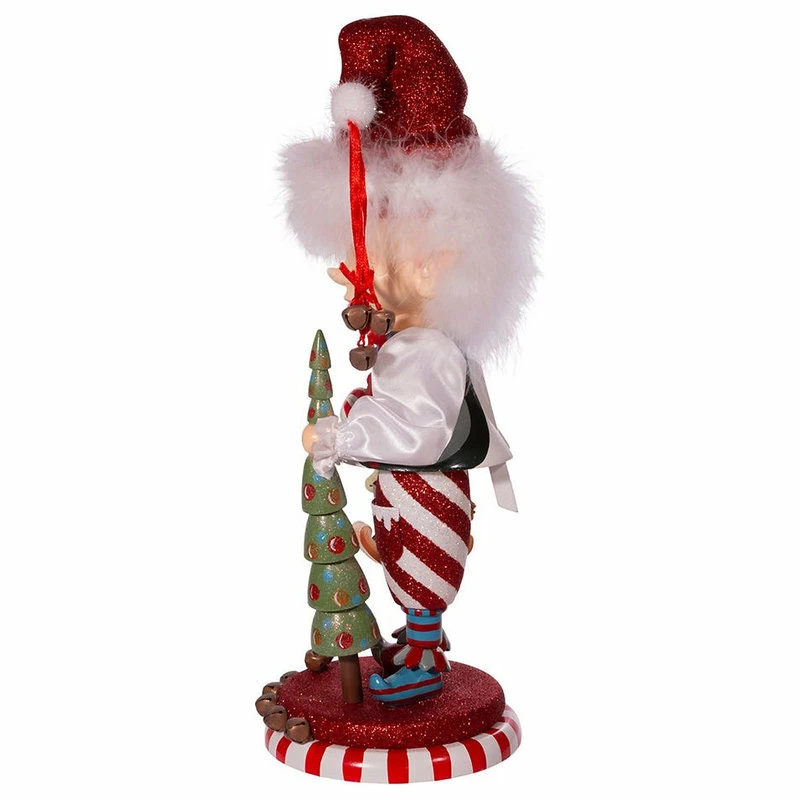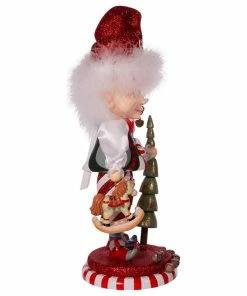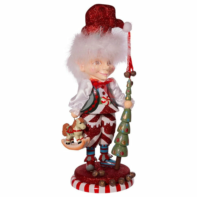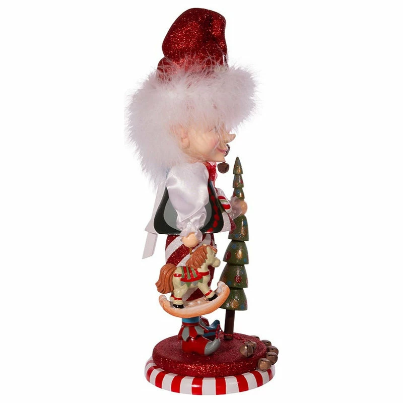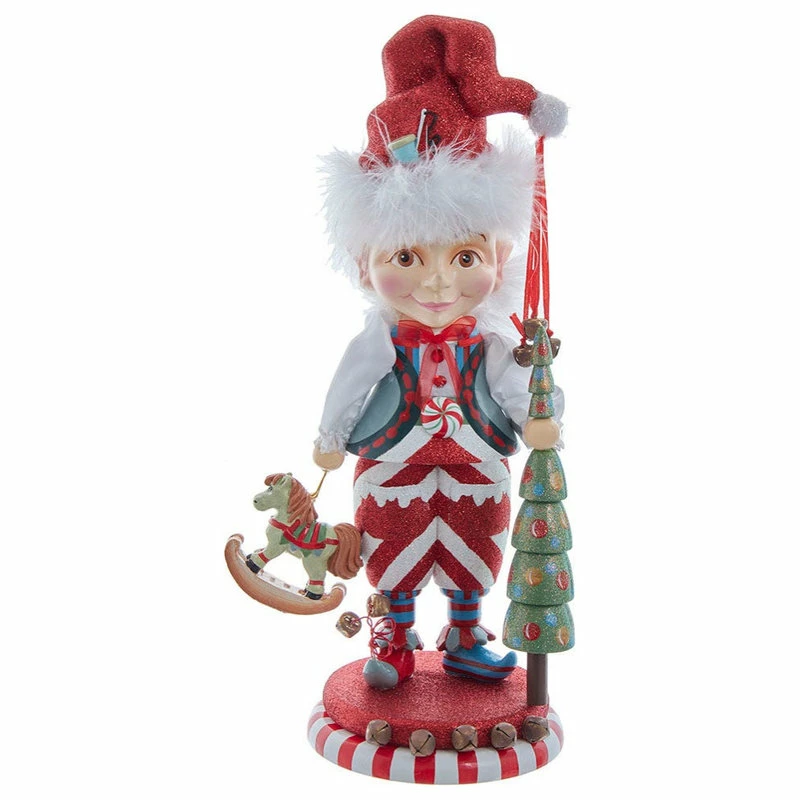 Hollywood Nutcrackers is a whimsical collection of nutcrackers created exclusively for Kurt S. Adler, Inc. and features an assortment of designs that put a unique, vibrant, memorable twist on traditional nutcrackers. This 15″ Hollywood Elf with Tree Nutcracker is wearing a Christmas inspired outfit with classic elf shoes and a glittery Santa hat. He holds a toy rocking horse in one hand and a Christmas tree in the other.