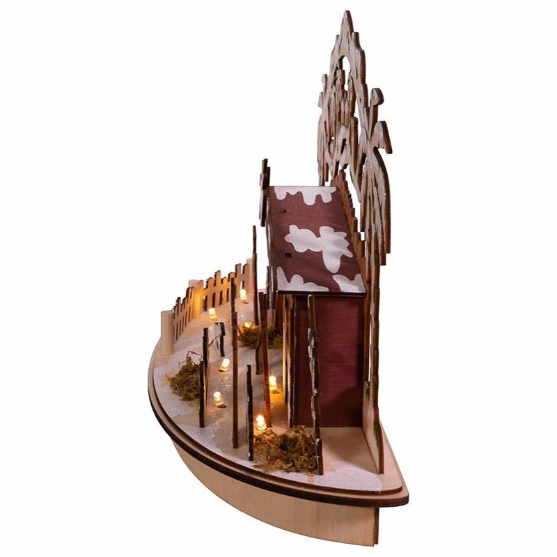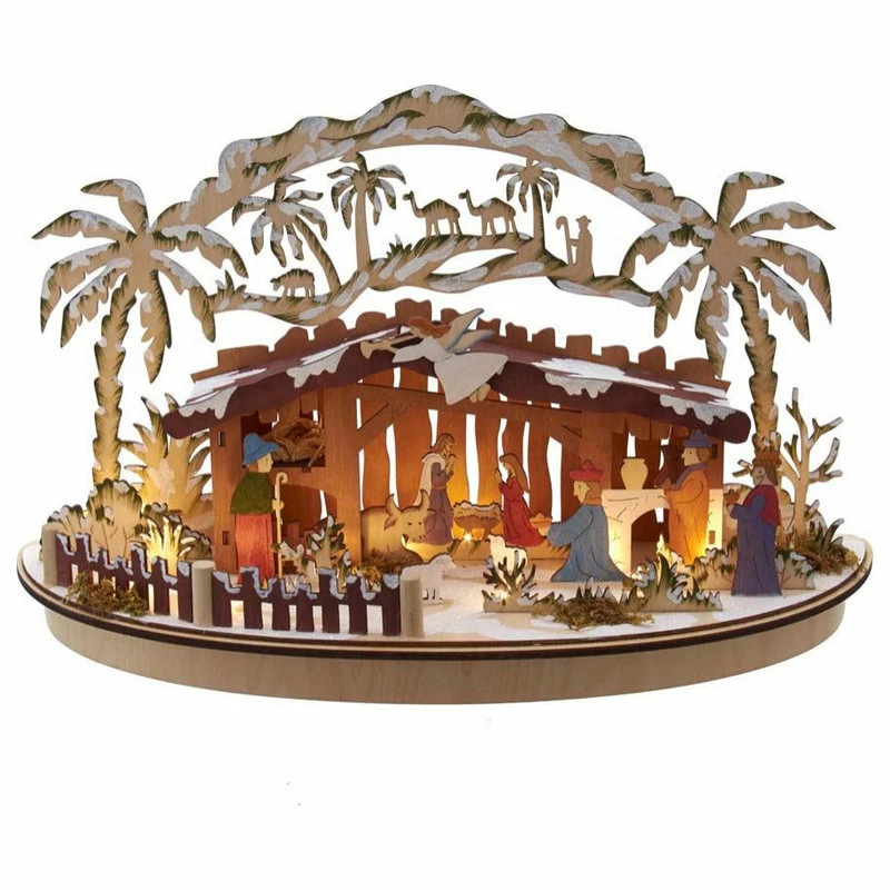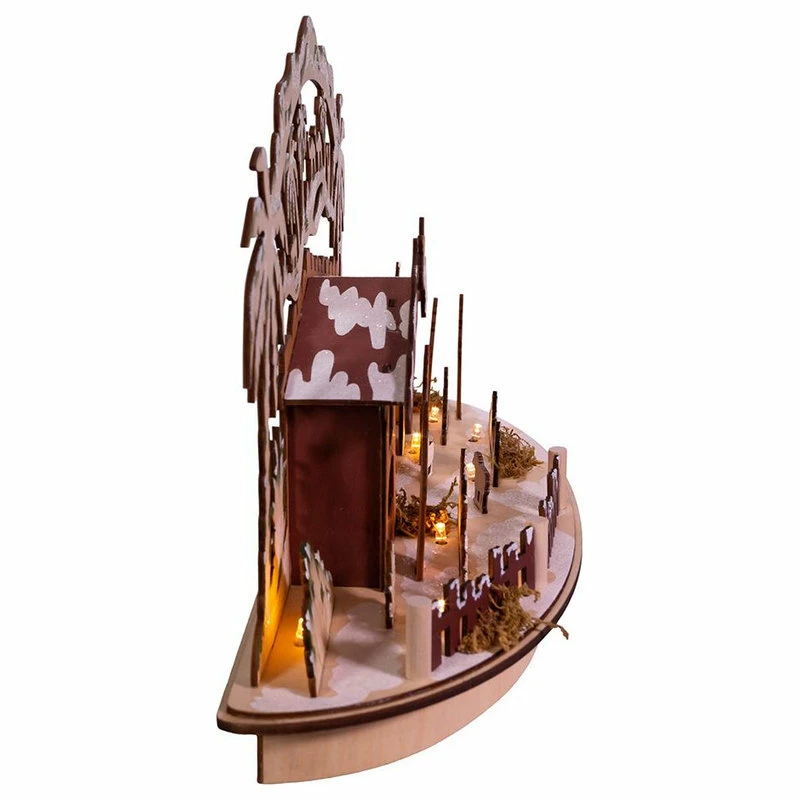 Celebrate and remember the true meaning of Christmas with this LED light-up wooden nativity scene table piece from Kurt Adler. This single table piece features all the key figures from the first Christmas (figures are attached to the piece): the Baby Jesus, Mary, Joseph, the Three Wise Men, shepherds, and angels and is illuminated from within with 10 warm white LED lights.