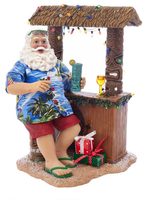 Best Pirce ๐ฏ Kurt S. Adler, Inc. Kurt Adler 11″ Fabriche Beach Santa Sitting At Tiki Bar ๐งจ