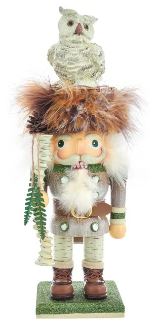 Hollywood Nutcrackers is a whimsical collection of nutcrackers created exclusively for Kurt S. Adler, Inc. and features an assortment of designs that put a unique, vibrant, memorable twist on traditional nutcrackers. This rugged woodsman is dressed in earth tones accented with glitter, and the design of his fun features a friendly owl sitting in a nest trimmed in feathers. Perfect for lending a warm, woodsy feel to your home and holiday decor!
