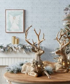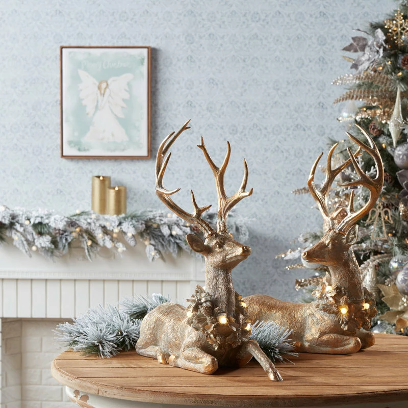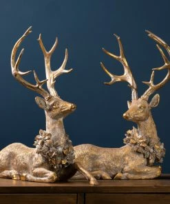 Add a chic touch of nature to your holiday Decor with this beautiful set of Deer Figurines. Featuring two assorted designs, the lougning deer design paired with the shiny gold finish is the perfect combination to create a stunning Christmas display. The quality polyresin and metal composition is sure to last for seasons to come. Display the pieces together to make a statement, or display them alongside your other holiday decor to add character to the space.