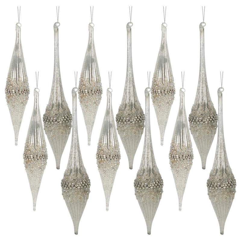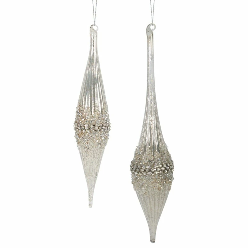 Glamour and glitz take shape in these ornaments featuring faux diamond gems, iridescent beads, and glitter.