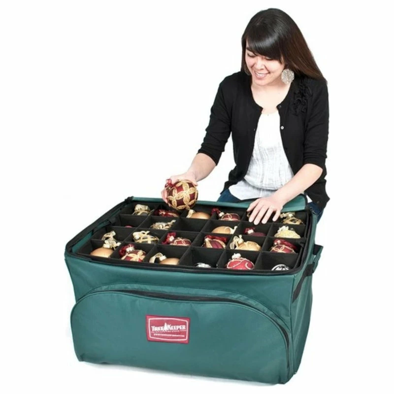 - Material(s): polyester/nylon Note: Storage unit only. Ornaments and Christmas decorations shown are not included