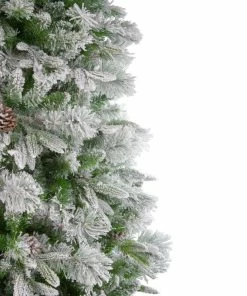 You know that Christmas tree hunting can be dreading and tiresome. So why not get this heavily flocked pine artificial tree? Easily movable this pre-lit Christmas tree reduces your work. Dusted with frosting and planted with pine cones this highlight will make your tree look realistic. Product Features: