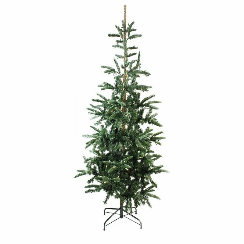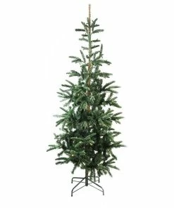 Product Features: Pre-lit with 250 warm clear LED lights “Warm clear” also known as “warm white” has a soft natural incandescent glow, similar to candlelight Bulb size: concave wide angle 667 tips 46.5″ green lead cord Additional Product Features: LED lights use 90% less energy Lights are equipped with Lamp Lock feature, which makes them replaceable, interchangeable and keeps them from falling out Lights contain rectifiers that eliminate the shimmer and shake in the light set If one bulb burns out, the rest will stay lit Durable non-glass replaceable bulbs Cool to the touch End-to-end connectors allow you to connect multiple sets together (not to exceed 210 watts) Wire gauge: 22 Light sets on tree are UL listed for indoor or outdoor use, however the tree itself is recommended for indoor use only Comes with replacement bulbs and fuse Slim profile tree 4-piece easy assembly (including stand) Comes with a FREE green metal tree stand 120 volts, 60 hertz, 0.065 amps, 7.8 watts Dimensions: 6.5′ high (from the base of the stand to the top of the tree) 30″ base diameter (at the widest point) Material(s): PE/PVC/metal/plastic bulbs/wire
