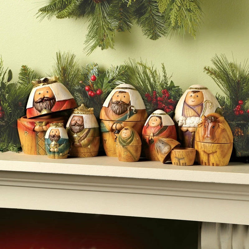 - A CHARMING YULE TIDE ACCENT – Nativity nesting dolls make a lovely addition to a mantle, table, desktop, counter or curio cabinet. They also look festive when set up under a Christmas tree.