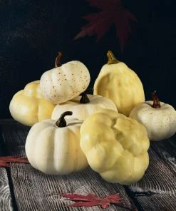 Get something unique and interesting this fall to spruce up your Fall or Halloween decor with this set of white pumpkins. With each individual pumpkin having its own size, shape and color, no matter where these pumpkins go, they will fit right in! Fill your home’s decor with the charm of the harvest season. Combine these fake pumpkins with other artificial fruits and veggies and place them in a bowl or other container to create the perfect autumn centerpiece. Add them to a fall wreath to create a Thanksgiving door accent. Simply set them on anything from shelves to counters to add a little flavor! Perfect for small additions to your home, office, or party space. White Pumpkins are sold in set of 7 & measures 3″ – 3.75″ Diameter and 2″ – 2.75″ High. Serene Spaces Living specializes in creating good quality accents that look great anywhere!
