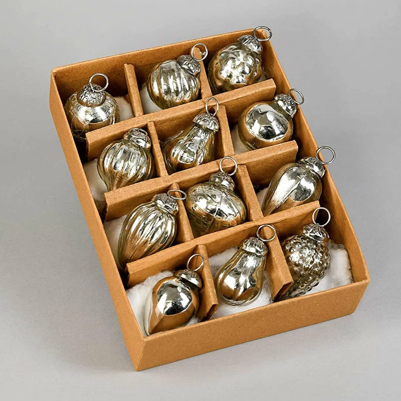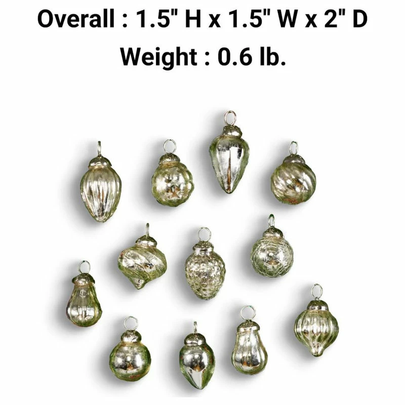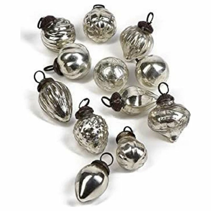 Outlet π Serene Spaces Living Set Of 12 Mini Mercury Glass Ornaments, Available, 3 Color, Silver βοΈ