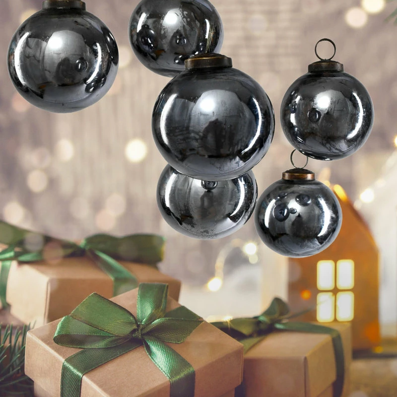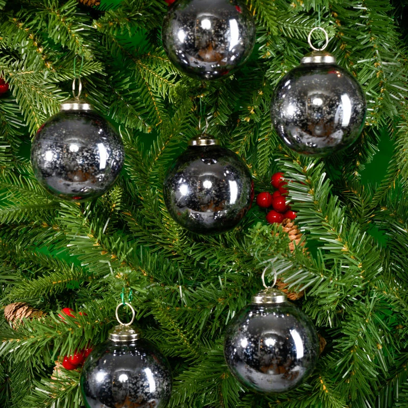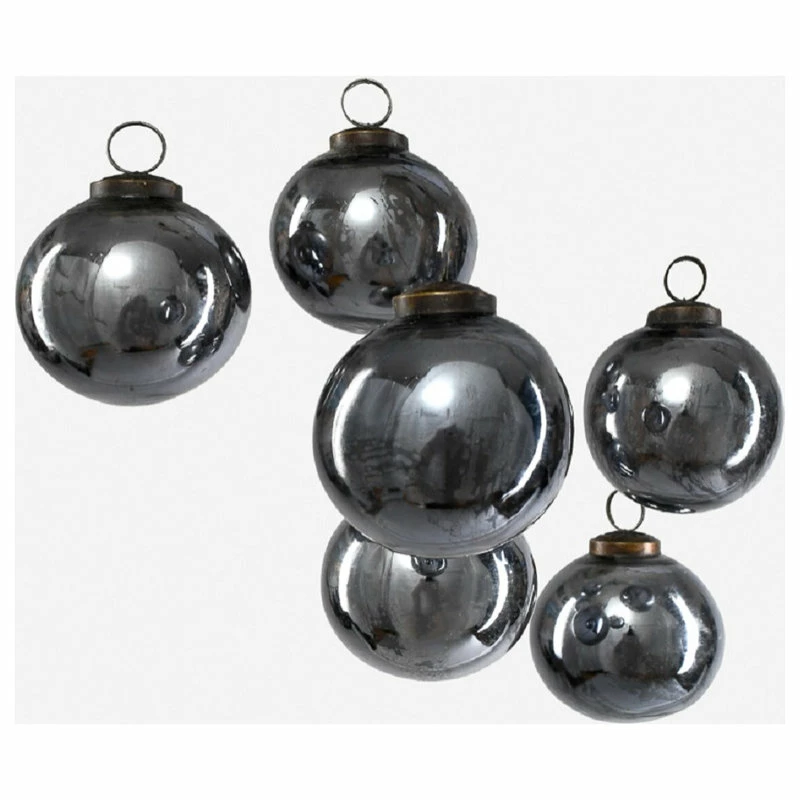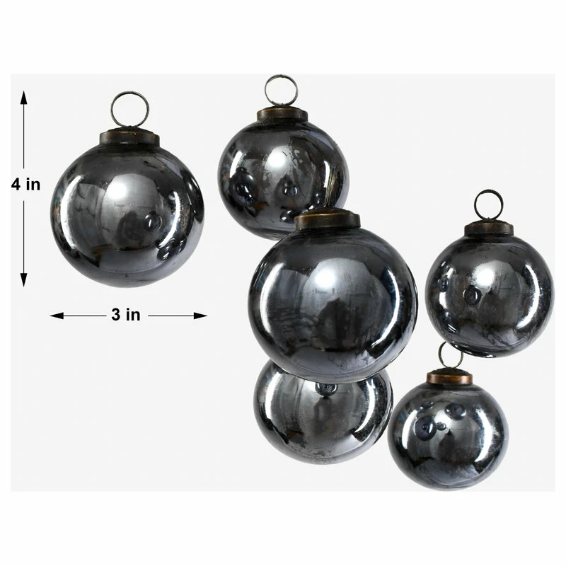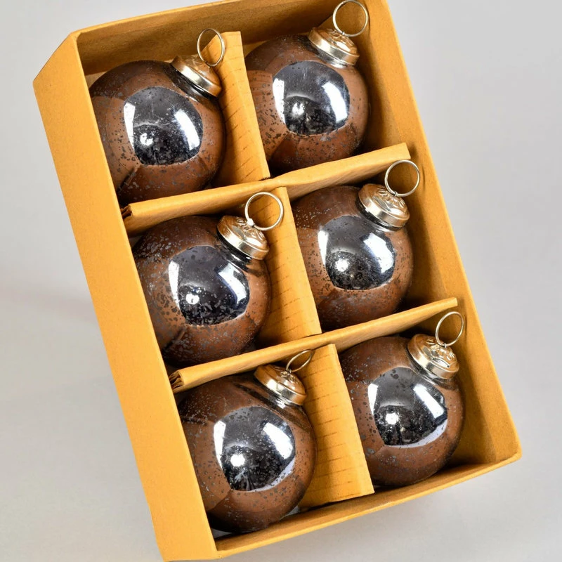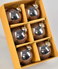 Promo ๐ Serene Spaces Living Set Of 6 Antique Platinum Glass Ball Ornament In Window Box, 4″x3″ ๐