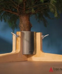 Tree Nests Rustic Christmas tree stand features a chandelier base that is made with wood and industrial grade metal. The rustic style makes for a timeless, vintage-inspired dcor, making it the perfect setting for you holiday ornaments and Christmas trimmings. Suitable for real Christmas trees.