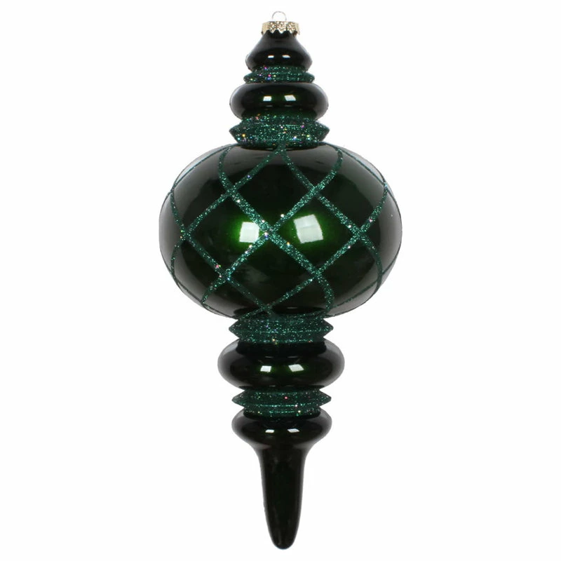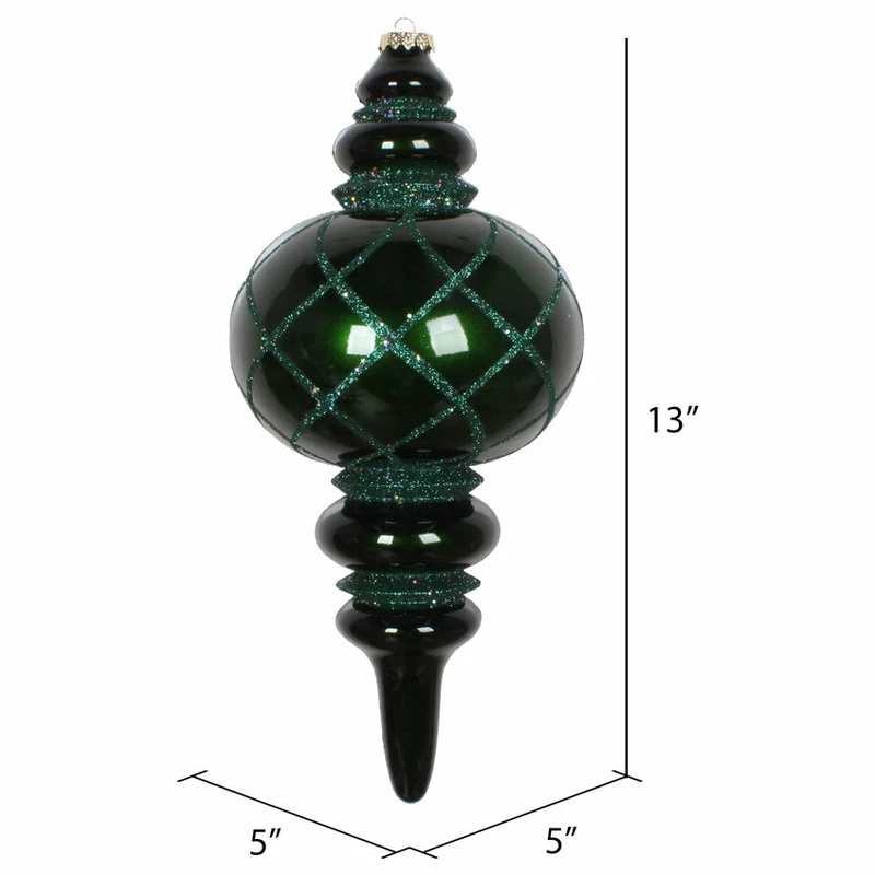 - 13″ Emerald Candy Glitter Net Finial OrnVickerman 13″ Emerald Candy Finish Net Top Finial Ornament with Glitter Accents