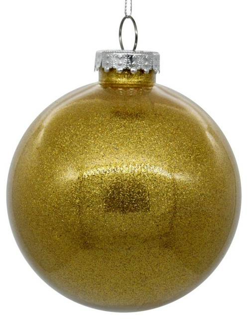 Vickerman Clear Ornament with Glitter Interior. Each ornament features a embossed cap and a string tie for easy hanging.