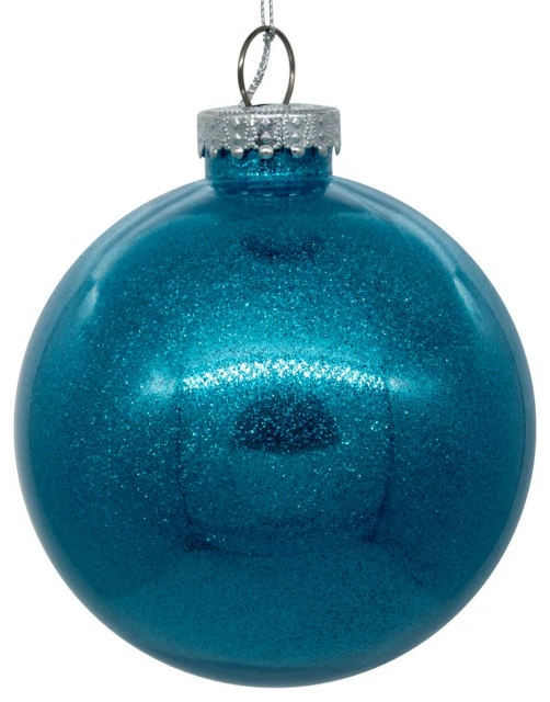 Vickerman Clear Ornament with Glitter Interior. Each ornament features a embossed cap and a string tie for easy hanging.