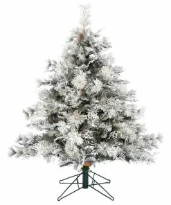 Discount 😍 Vickerman Company Vickerman Flocked Alaskan Pine Tree, 3′, Clear Lights 🛒